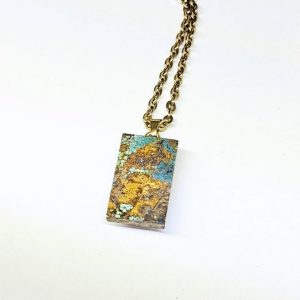رنگ آبی آسمانی این سنگ، با رگههای تیره و طبیعی که گاه مانند نقشهای در دل آن نقش بسته، جلوهای منحصربهفرد و زنده به گردنبند میدهد.