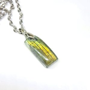 🌟 طلوعی در دل سنگ – گردنبند سنگ لابرادوریت زرد (کد L48)